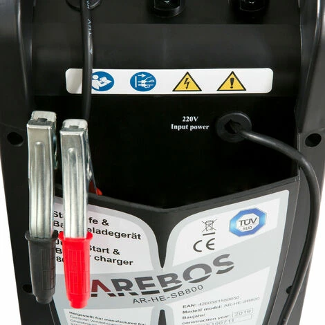 Das professionelle Arebos Starthilfe- und Batterieladegerät eignet sich zum Starten von Kraftfahrzeugen sowie Laden und Schnelladen von Fahrzeugbatterien von Motorrad, Auto und LKW mit Kapazitäten von 40 bis 800 Ah. Auch einsetzbar als vollautomatisches Ladegerät bei gewöhnlichen 12V PKW-Fahrzeugen oder 24 V LKW. Für die einfache Überwachung des Ladevorgangs sorgt ein eingebautes Amperemeter, auf dem der momentane Ladestrom abgelesen werden kann.