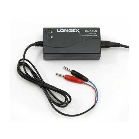 Ladegerät, für Kompakt-Elektromodul, mit Kurzschluss- / Verpolungsschutz. Mit Kurzschluss- und Verpolungsschutz. Für Blei/Vlies- und Blei-Gel-Akkus geeignet. Anschluss 230 Volt – 12 Volt, 3 A.