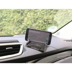 Antirutschmatte für sicheren Halt von Handy, Smartphone, Schlüssel, Kleingeld oder sonstigen Kleinteilen auf dem Armaturenbrett. Passend auch für größere Smartphones, wie z.B. IPhone 6 und 6+. Features: – Einfache Befestigung ohne zu kleben und ist jederzeit mühelos zu entfernen – Auch als zuverlässige Halterung bei Nutzung der Navigation zu verwenden – Abwaschbar – Farbe: schwarz – Maße (LxBxH): ca. 17,5×19,5×0,5 cm