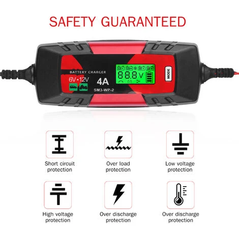 Vielseitig Ladegerät & Maintainer — automatisch oder manuell Dual Art und Weise passt den Ladestrom und Wartbarkeit. Automatisch von einem schnellen Ladeschalt, nach oben-off, dann auf Erhaltungsladung. Pulse Reparatur-Funktion kann helfen, Ihren Verlust Batterie zu reparieren und die Batterielebensdauer zu verlängern.