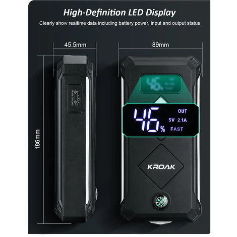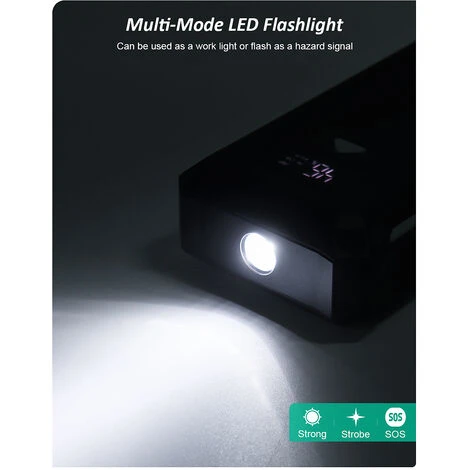 Die Auto-Starterbatterie verfügt über eine leistungsstarke LED-Taschenlampe: Es gibt 3 Modi für LED-Lichter (SOS, Blitz und Normal), die beim Camping, Picknicken, Naturabenteuer und Erkunden ein möglicher Lebensretter sind.