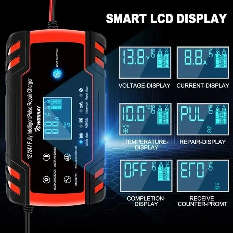 - 【Anwendungsbereich】Das Laden der Lithiumbatterie ist strengstens verboten. Geeignet für 12V-24V 4AH-120AH Bleiakku (AGM, GEL, MF, SLA, VRLA), Diagnose und Reparatur von Batterieproblemen und Verlängerung der Akkulaufzeit für Autos, Lastwagen, Motorräder, Rasenmäher oder Boote