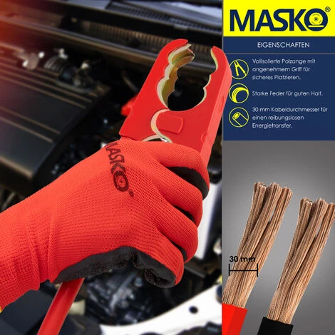 MASKO ĂśberbrĂĽckungskabel mit Ăśberspannungsschutz, vollisolierten Polzangen mit angenehmen Griff, kupferbeschichtetes Aluminium und reibungslosem EnergietransferÂ