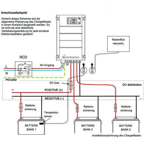 - Masterbus kompatibel, Einbindung in ein Masterbussystem ermöglicht Fernsteuerung und volle Kontrolle des ChargeMaster, so könnten Sie dieses Gerät zum Beispiel zentral über das Masterview Easy 3,5 Zoll Touch-Panel (MPN 77010305) steuern und überwachen