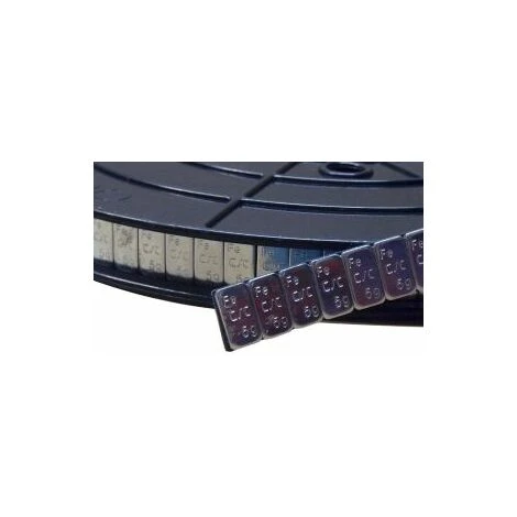 Rolle mit 1200 selbstklebenden Klebegewichten zu 5 Gramm aus verzinktem Stahl.