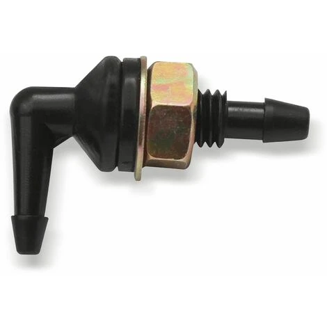 Universal Schlauchverbindung 90° in bester Qualität. Technische Daten: – Maße: 38x26x15 mm – Bohrloch Ø: 8 mm – Blechstärke: 0-5 mm – Schlauchanschlüsse Ø: 5 mm – Material: Kunststoff Lieferumfang:1x Schlauchverbindung1x Unterleggummi1x Unterlegscheibe1x Mutter