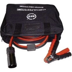 Starterkabel für Nutzfahrzeuge und Maschinen mit Bordsteckdose wie Best.-Nr. 85 71 99. Vollisolierte 600 A Stahlblechzangen mit 2 Gusseinlagen und schmalen Kopf. Startsafe® Schutzschaltung im glasfaserverstärktem Panzergehäuse. Stecker ohne Überwurfmutter. Inkl. reißfester Textiltasche.