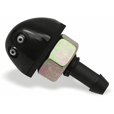 Universal Spritzdüse in bester Qualität, Spritzdüsen aus Messing (nicht rostend). Zwei verstellbare Spritzdüsen. Technische Daten: – Maße Düsenkopf(BxTxH): 17x18x12 mm – Bohrloch Ø: 8 mm – Blechstärke: 0-5 mm – Schlauchanschluss Ø: 5 mm – Material: Kunststoff/Messing – Farbe: Schwarz Lieferumfang:1x Spritzdüse1x Unterlegscheibe Gummi1x Unterlegscheibe1x Mutter