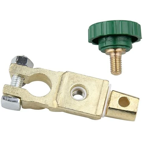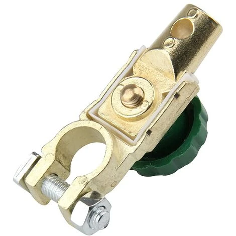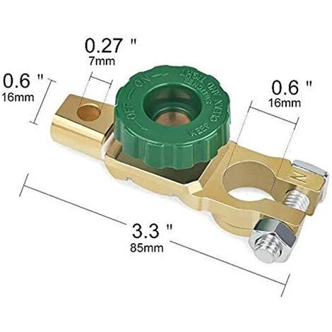 Messinggrüner Batterieschalter aus strapazierfähiger Messinglegierung, Langlebiger Zinklegierungsanschluss. Heavy Duty, Geeignet für die meisten Batterien, unter der Bedingung einer Spannung von 12 V, Dauerstrom 125 A, Momentanstrom 500 A, Entwickelt für Hochstromanwendungen.