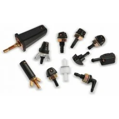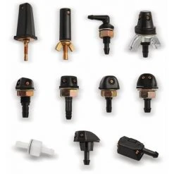 Universal Spritzdüse in bester Qualität, Spritzdüsen aus Messing (nicht rostend). Zum Aufklippsen direkt auf den Scheibenwischerarm. Vier einstellbare Spritzdüsen. Technische Daten: – Maße Düsenkopf(BxTxH): 15,6x25x13,6 mm – Schlauchanschluss Ø; 5 mm – Aussparung Scheibenwischerarm (LxBxH): 15x11x4 mm – Material: Kunststoff/Messing – Farbe: Schwarz Lieferumfang:1x Spritzdüse