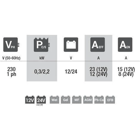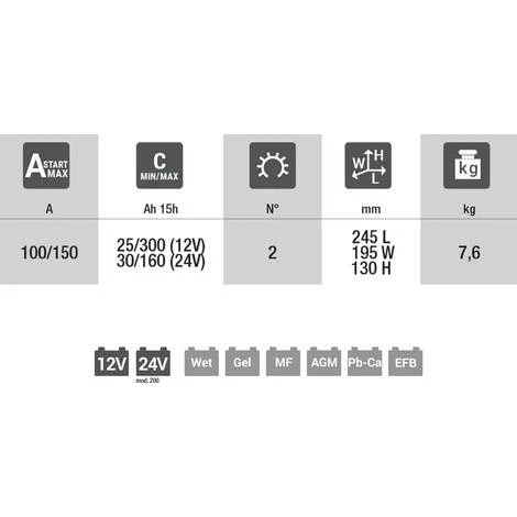- Für Batterien mit 12/24 V