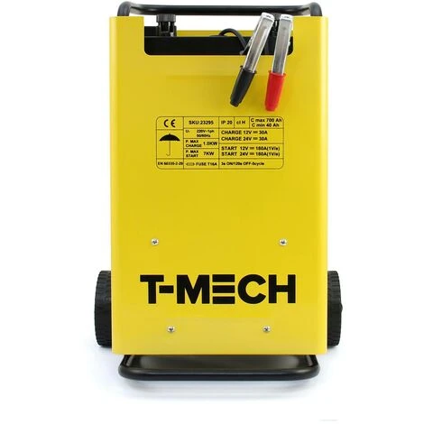 Dieses mobile Werkstattladegeraet mit Ladeelektronik und Starteinrichtung zum Laden von 12-/24 V Bleibatterien. Das Ladegeraet besitzt eine Ladeelektronik und Starthilfevorrichtung. Es hat eine automatische Sicherung vor ueberladung und Falschpolung.